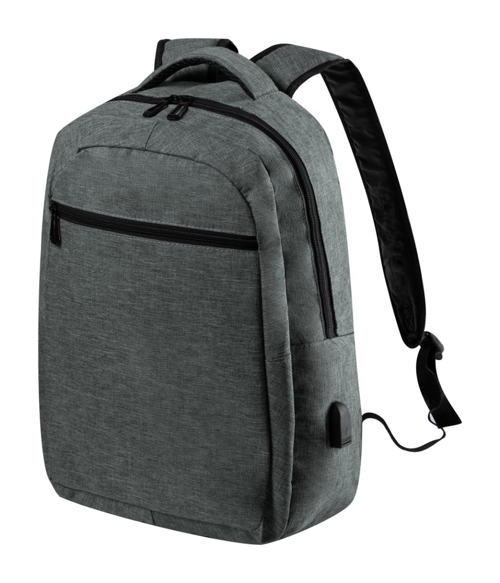 Batoh s přihrádkami na zip, boční kapsou ze síťoviny, polstrovanou přihrádkou na notebook (15 ") a tablet (10"), polstrovanými zády a ramenními popruhy. Se zabudovaným USB připojením pro power banky. Polyester 600D.