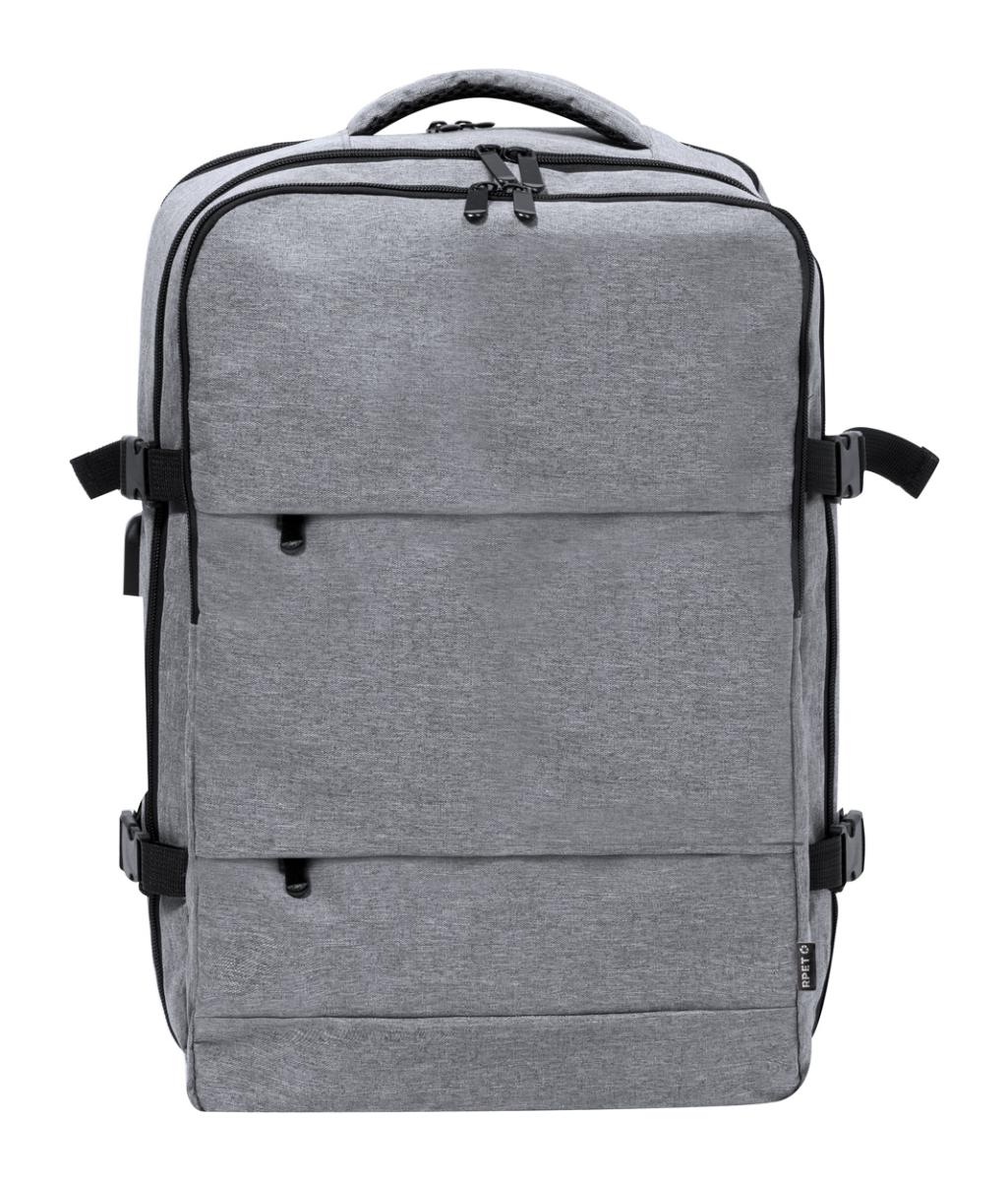 Voděodolný RPET batoh s předními a bočními kapsami, hlavní přihrádkou na zip, polstrovanou přihrádkou na notebook (17") a na boty, polstrovaná záda a ramenní popruhy. 300D RPET polyester s výrazným štítkem RPET.