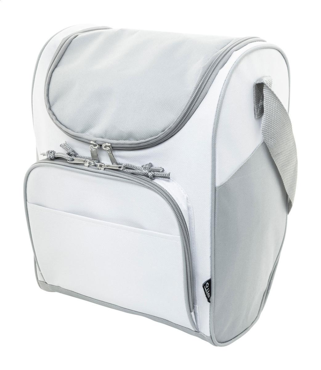 Chladicí taška RPET s hliníkovým polstrováním. Se 2 přihrádkami na zip, malou přední kapsou a nastavitelným ramenním popruhem. 600D RPET polyester s výrazným štítkem RPET.