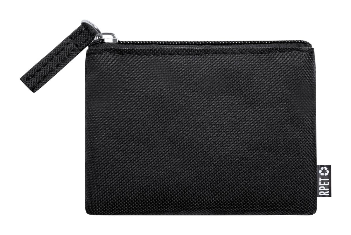 Peněženka na zip ze 600D RPET polyesteru, s etiketou s označením RPET.