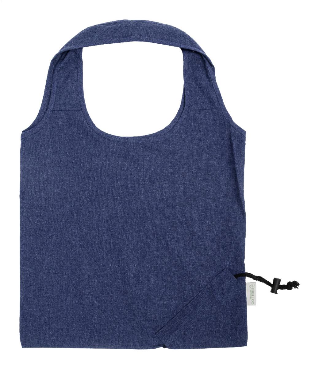 Skládací nákupní taška ze 70 % recyklované bavlny a 30 % polyesteru RPET, 140 g/m². S výrazným štítkem z recyklované bavlny.