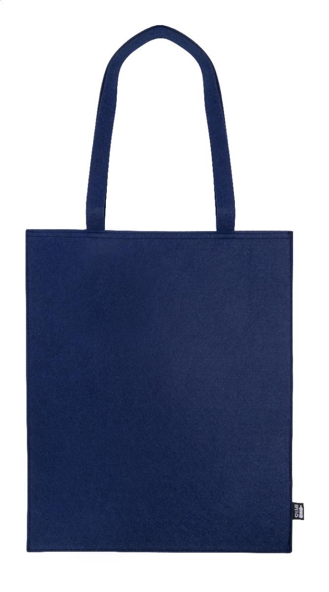 Nákupní taška z RPET plsti s dlouhými uchy. S výraznou etiketou z RPET.