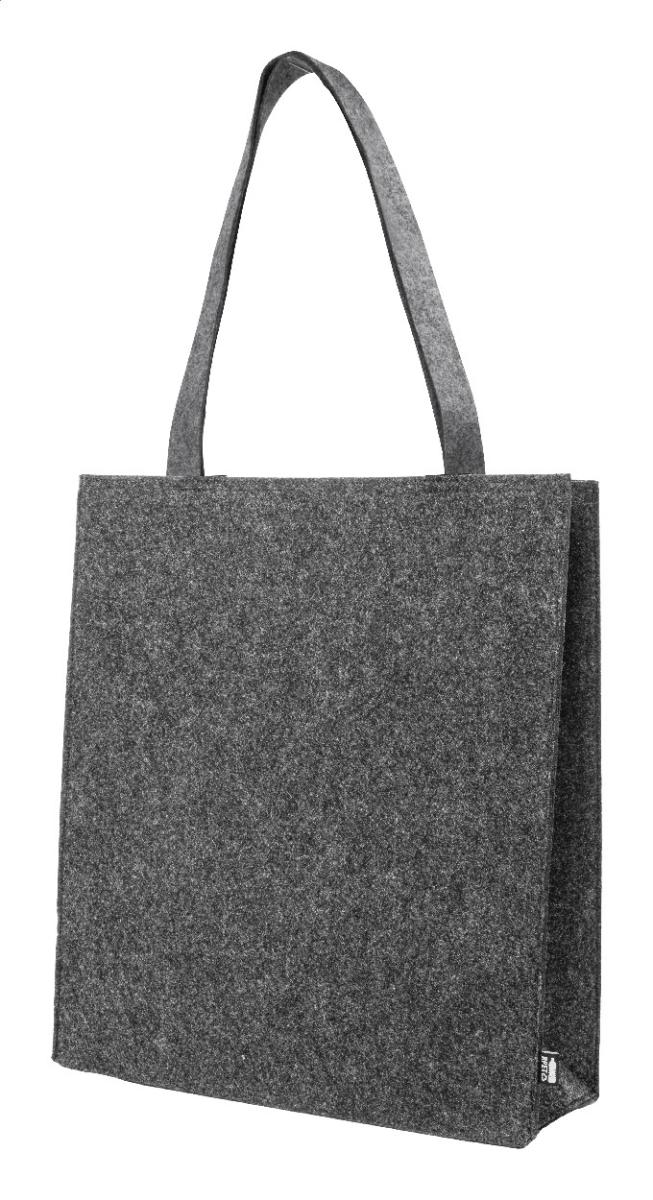 Nákupní taška z RPET plsti s klínkem a dlouhými uchy. S výraznou etiketou z RPET.