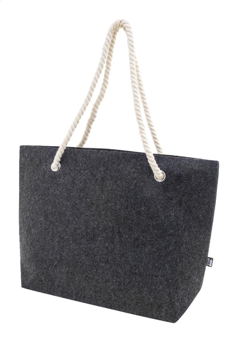 Plážová nebo nákupní taška z RPET s bavlněnými šňůrkami a spodním klínkem. S výrazným štítkem RPET.