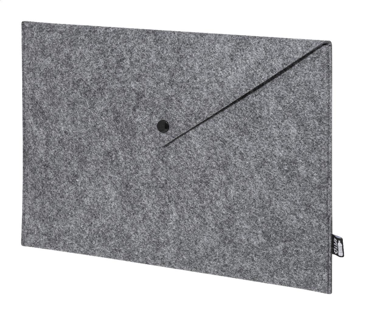 Taška na dokumenty nebo pouzdro na notebook z RPET plsti s knoflíkovým zapínáním. Vhodné pro notebooky do 13". S výrazným štítkem RPET.