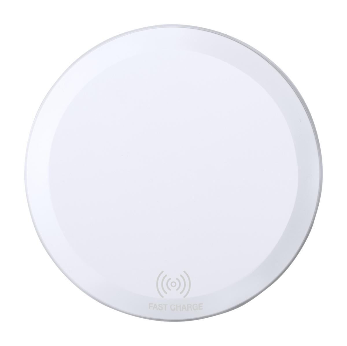 Bezdrátová rychlonabíječka v plastovém pouzdře s LED indikátorem nabíjení a protiskluzovou základnou. Maximální výstup 2000 mA. Včetně nabíjecího USB kabelu.