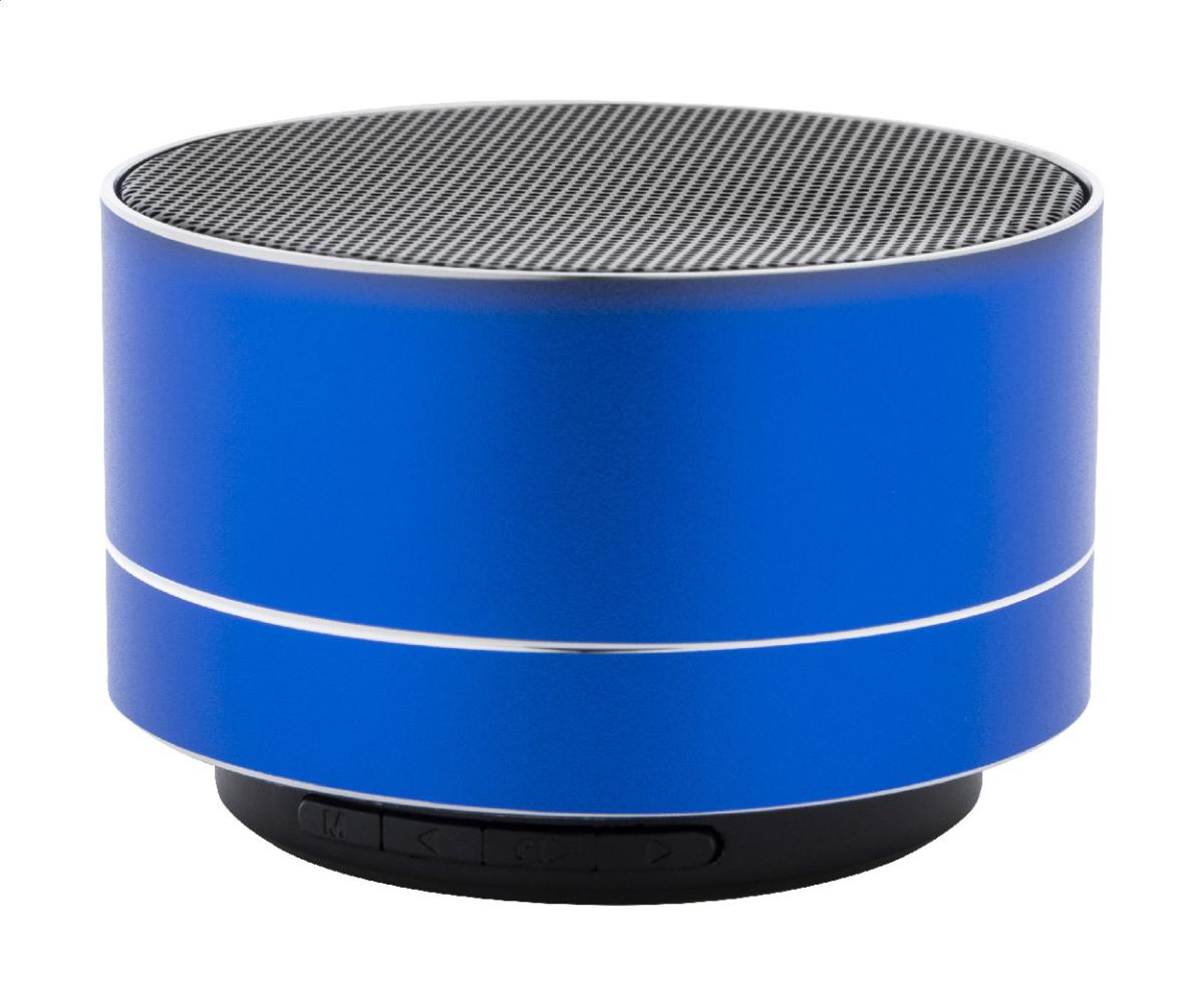 Bezdrátový reproduktor z recyklovaného hliníku s kovovou síťovinou, LED světlem na spodní straně a dobíjecí baterií (300 mAh). S funkcí handsfree hovorů a přehrávání MP3 z micro SD karty. Včetně nabíjecího kabelu USB.