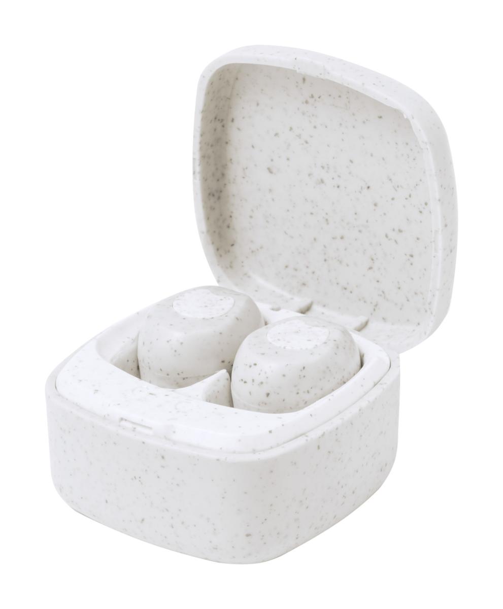 Bezdrátová bluetooth sluchátka s funkcí hands-free volání z ekologického plastu z pšeničné slámy, v nabíjecím pouzdře. Včetně USB nabíjecího kabelu.