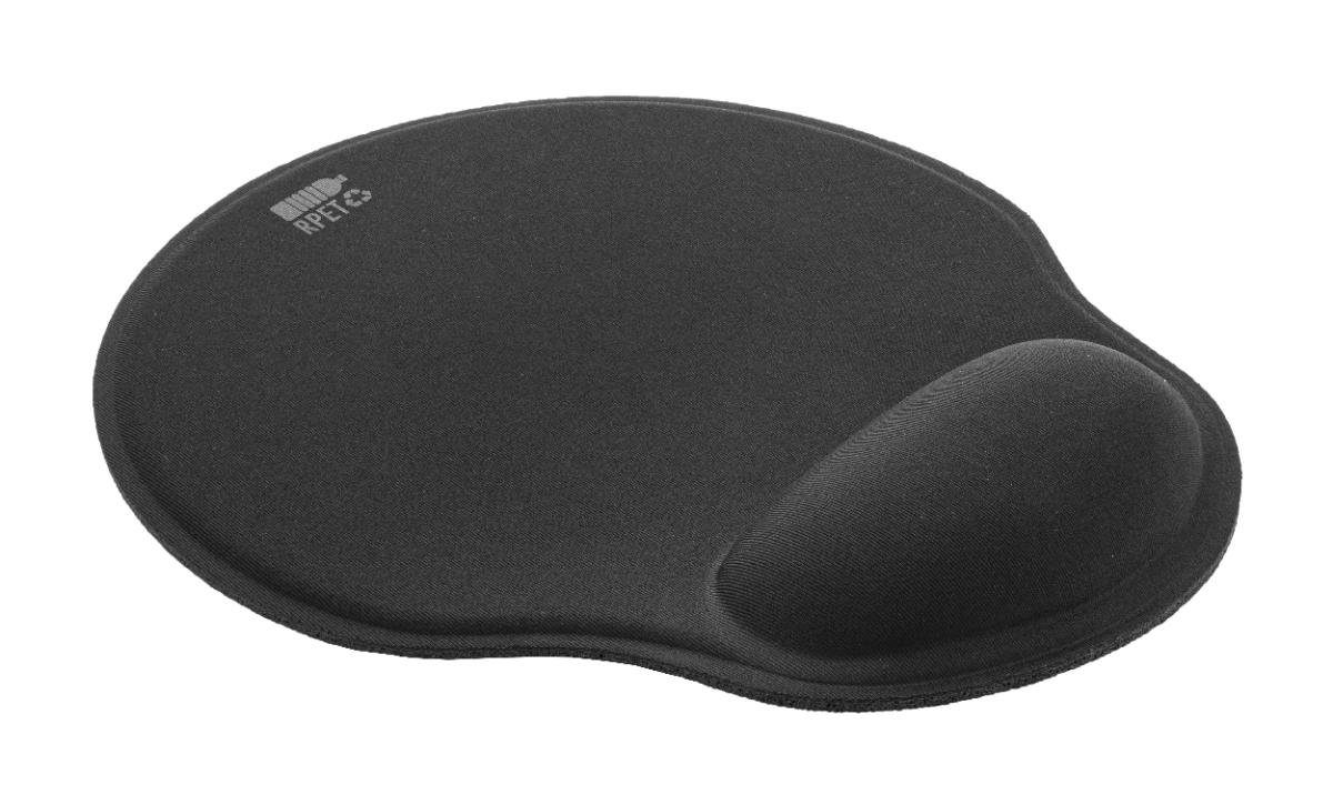 RPET podložka pod myš s ergonomickou opěrkou zápěstí a gumovou protiskluzovou základnou.