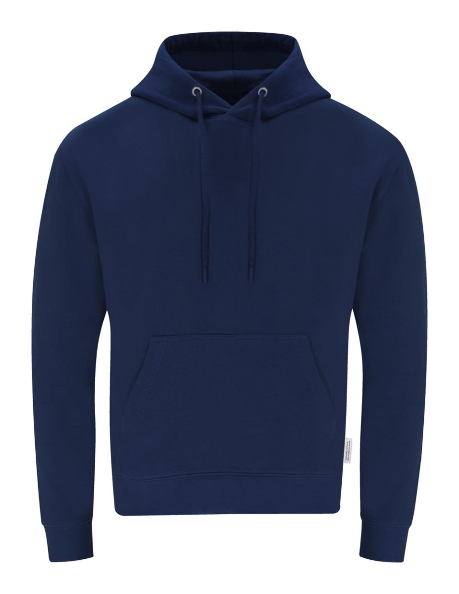 Mikina s kapucí a přední kapsou ze 60% organické bavlny a 40% RPET polyesteru, 280 g/m2.