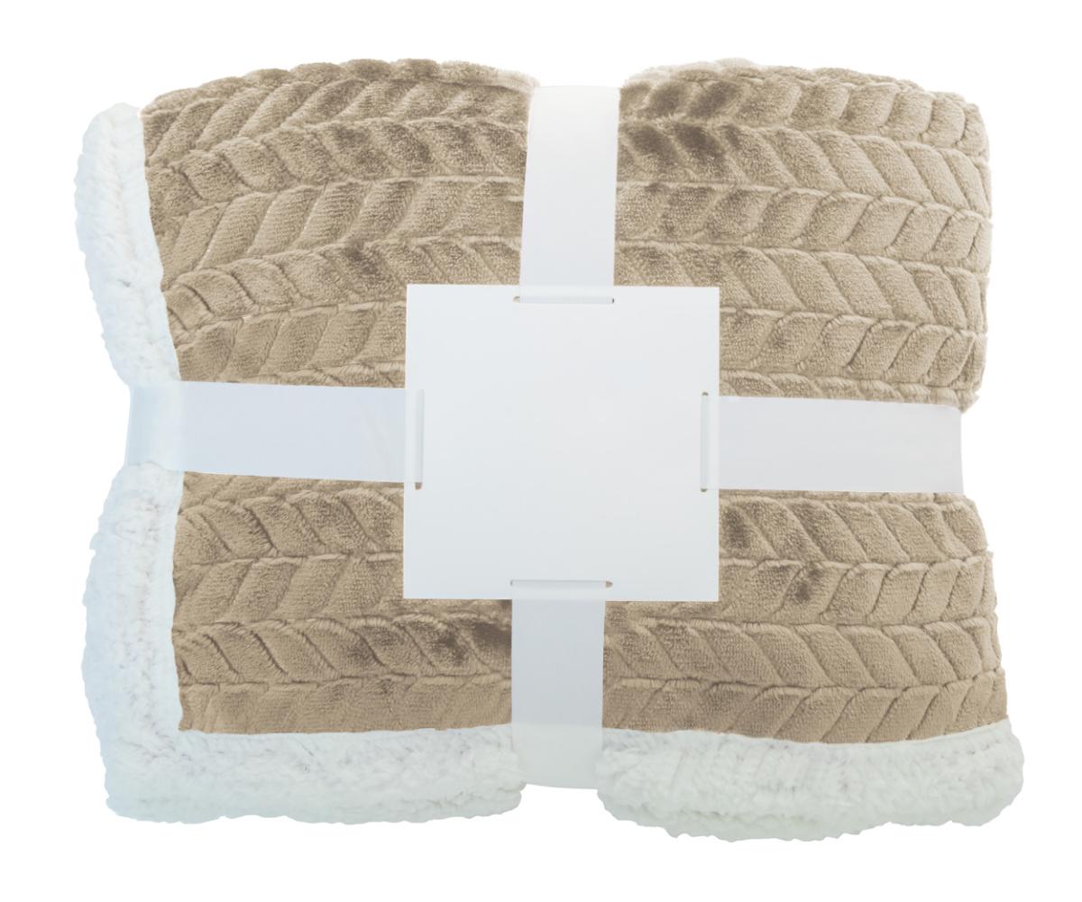 Dvouvrstvá RPET deka se žakárovým vzorem ze 240 g/m² flanelového fleecu RPET a oboustrannou podšívkou 210 g/m² RPET sherpa fleecu. Zabalené do stuhy a potisknutelné papírové karty.
