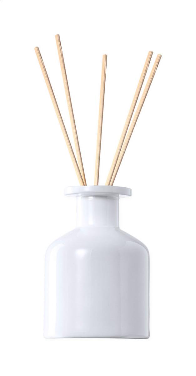 Aroma difuzér se skleněnou lahvičkou a dřevěnými tyčinkami difuzéru. Se 100 ml vanilkového parfému.