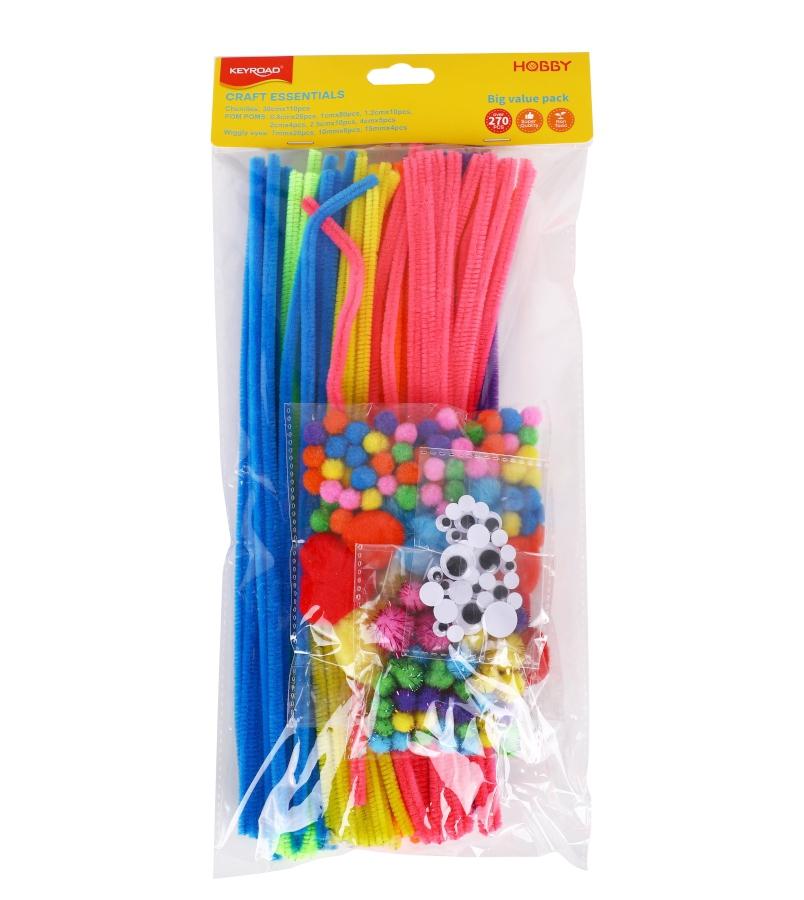 Velká kreativní sada bambulek, drátků a očiček. Tato bohatá tvořivá sada obsahuje více než 270 ks barevných bambulek, chlupatých drátků a dekoračních očiček (drátky 30 cm × 110 ks, bambulky 0,8 cm × 26 ks, 1 cm × 80 ks, 1,2 cm × 10 ks, 2 cm × 4 ks, 2,5 cm × 10 ks, 4 cm × 5 ks, očička 7 mm × 20 ks, 10 mm × 6 ks, 15 mm × 4 ks). Všechny komponenty jsou netoxické a vyrobené ve vysoké kvalitě. Materiál lze lepit, stříhat i tvarovat, takže je ideální pro výrobu různých postaviček, zvířátek, ozdob i originálních dekorací. Skvělá volba pro školní projekty, domácí tvoření i jako zábavný dárek pro malé kreativce.