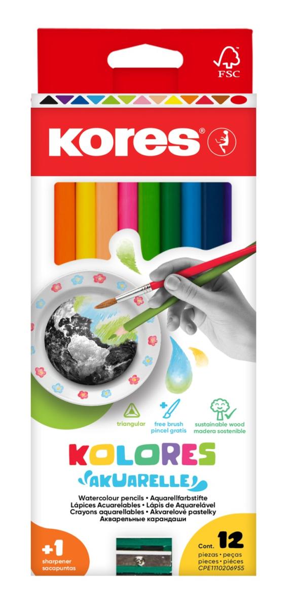 Pastelky trojhranné Kores akvarelové - 12 barev