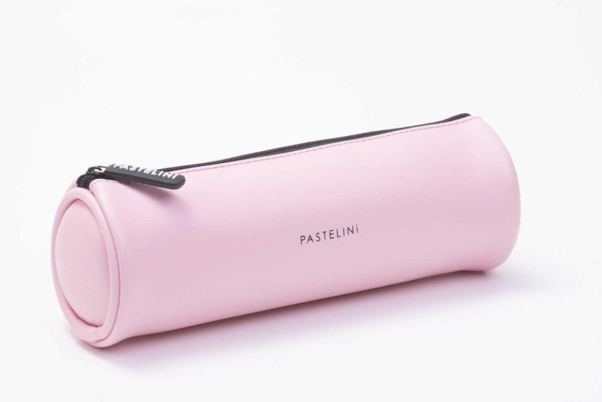 Studentské pouzdro Pastelini na psací potřeby v růžovém provedení, materiál 100% polyuretan. délka 21 cm, průměr 7 cm