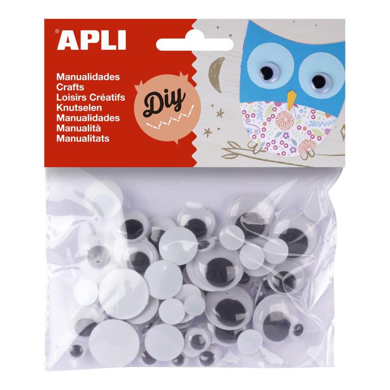 Dekorační pohyblivé oči APLI kulaté / nelepící / černé / 75 ks